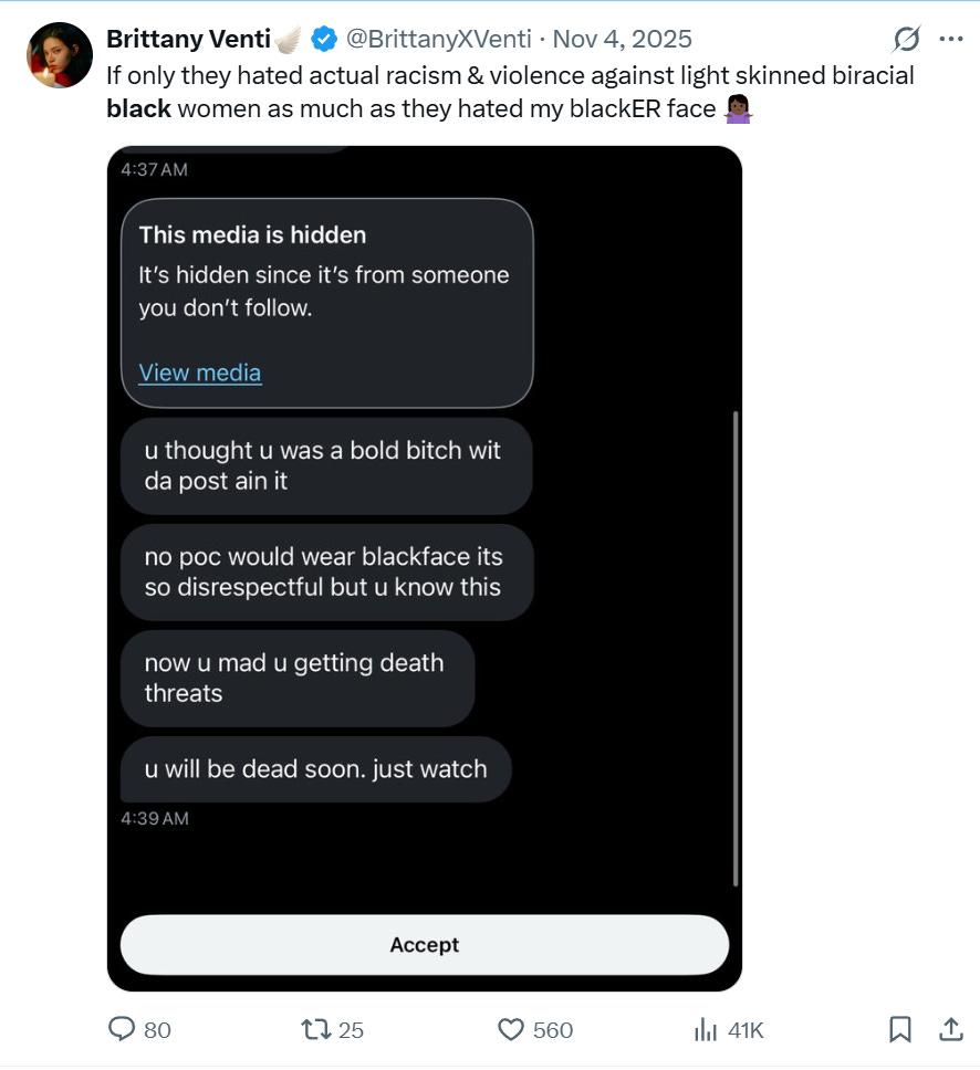 I experienced non acceptance as a mulatto before it was even trendy so I was able to predict this reaction and I wanted to do it to prove my point that they don’t actually care about black women they are just virtue signaling. In America, our culture prioritizes political correctness over humanitarianism at the cost of rationality.